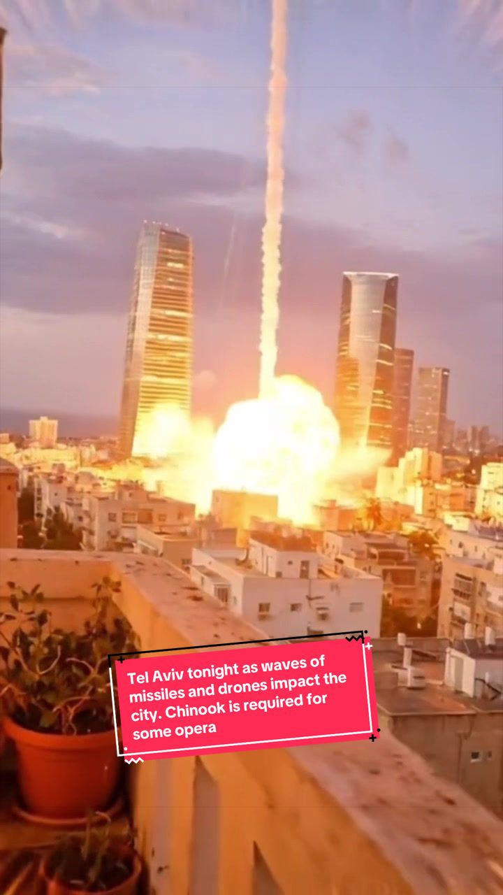 Sur TikTok, funnyrun37 a partagé une vidéo nommée « Tel Aviv ce soir alors que des vagues de missiles et de drones frappent la ville. Chinook est re